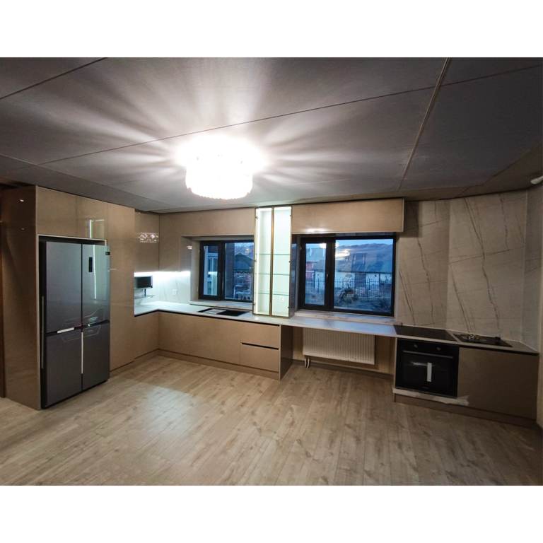 Хийгдэх материал Эх бие: WP ZERO брендийн цэвэр модон хавтан Хаалга: Солонгосын Hansol брендийн гарын хээ тогтохгүй ус чийгний хамгаалтын давхаргатай UB, MAT гоёлын хавтан Тавцан сонголтоор: Модон тавцан нь 2,5см-3,8см зузаантай ус чийгний хамгаалалтай Мозайк чулуун тавцан нь: 1,5см зузаантай өндөр температурын тэсвэртэй, Өнгөний нягтаршил сайтай. 12v, 24v, 220v -ийн Өнгийн болон Шар, Цагаан бүдгэрж тодордог лед гэрэл Шилэн хаалга хүсэн өнгө загвар хэмжээ сонголтой. Шилэний CNC DTC брендийн нугас : Өөр дээрээ тавишруулагчтай үйлдвэрийн 50000 мянган удаагын хааж нээгдэх тесттэй. 3D тохиргоотой